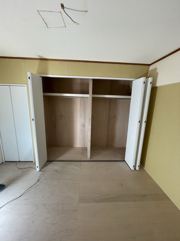 床材をフローリングに変更して、押入れとの段差をなくし、クローゼットとして使えるように押入れの構造変更を行いました。